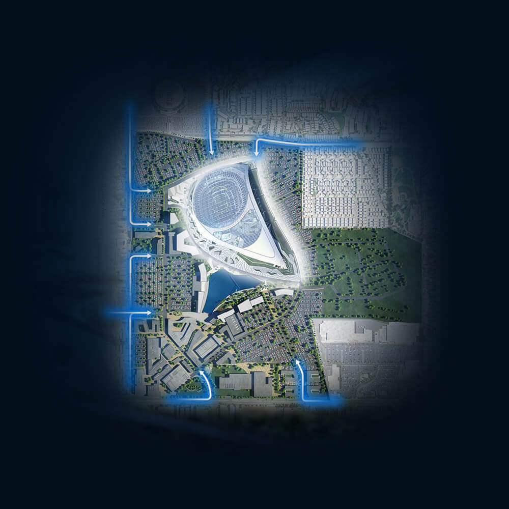 Elevate your tailgates with 25-acres of open parks and walking paths, perfect for game day fun with friends and family, right outside the stadium.