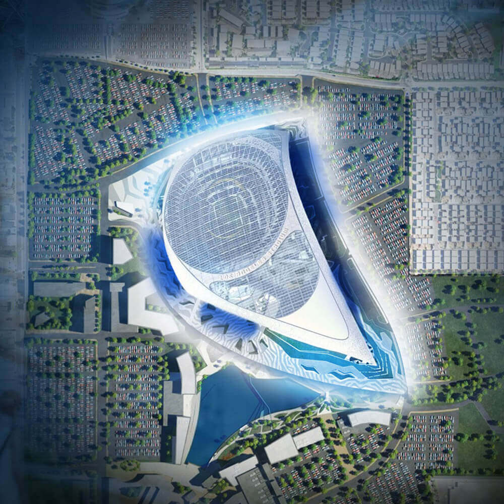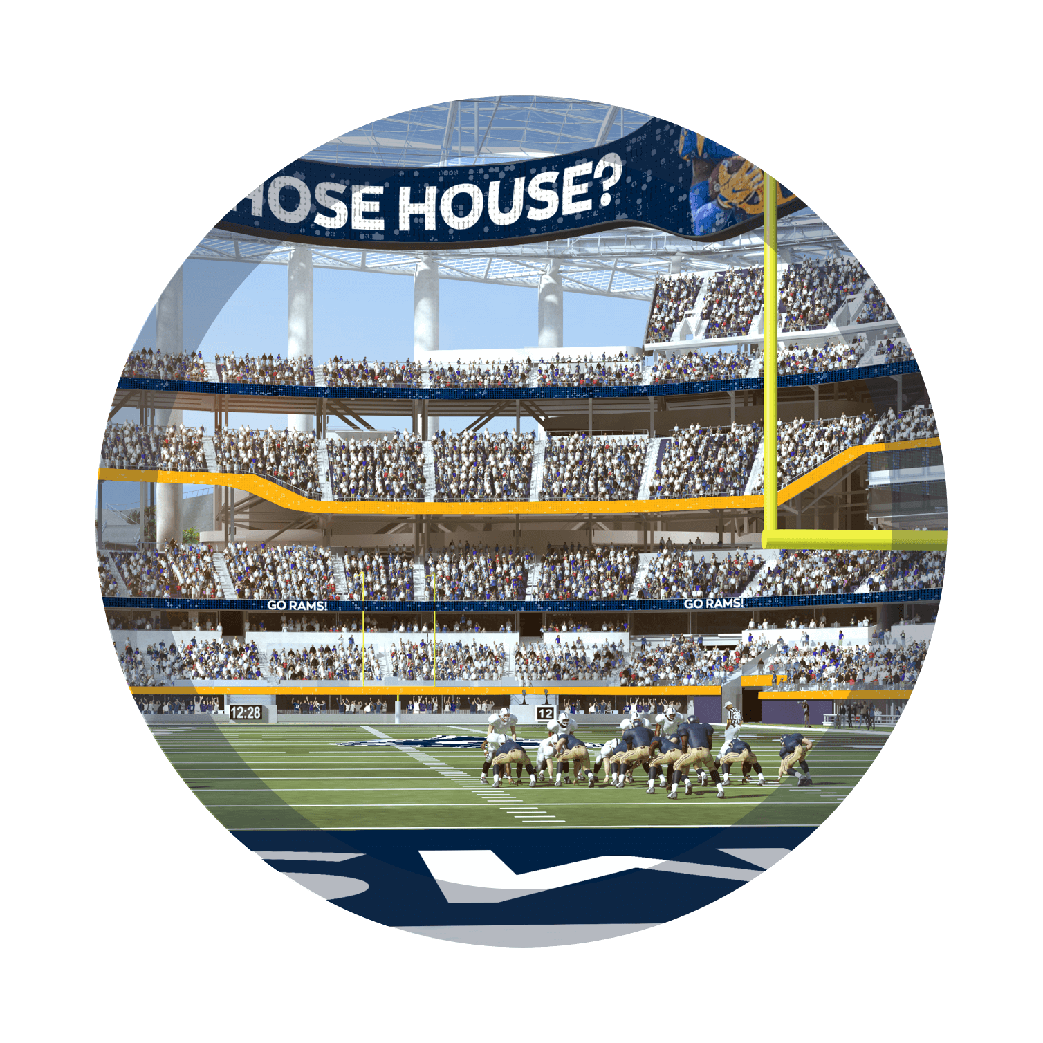 New home of your Los Angeles Rams. This 3.1 million sq. ft. stadium is the centerpiece of the 300-acre entertainment district and urban village. The open-air stadium is uniquely designed for Los Angeles, and will be the new global address for sports and entertainment with an expandable seat capacity of over 100,000. In addition to the energy packed stadium and 6,000 seat performance venue, the 2.5-acre Champions Plaza will have multiple LA activities, concerts, and sporting events, all under the same canopy styled roof.